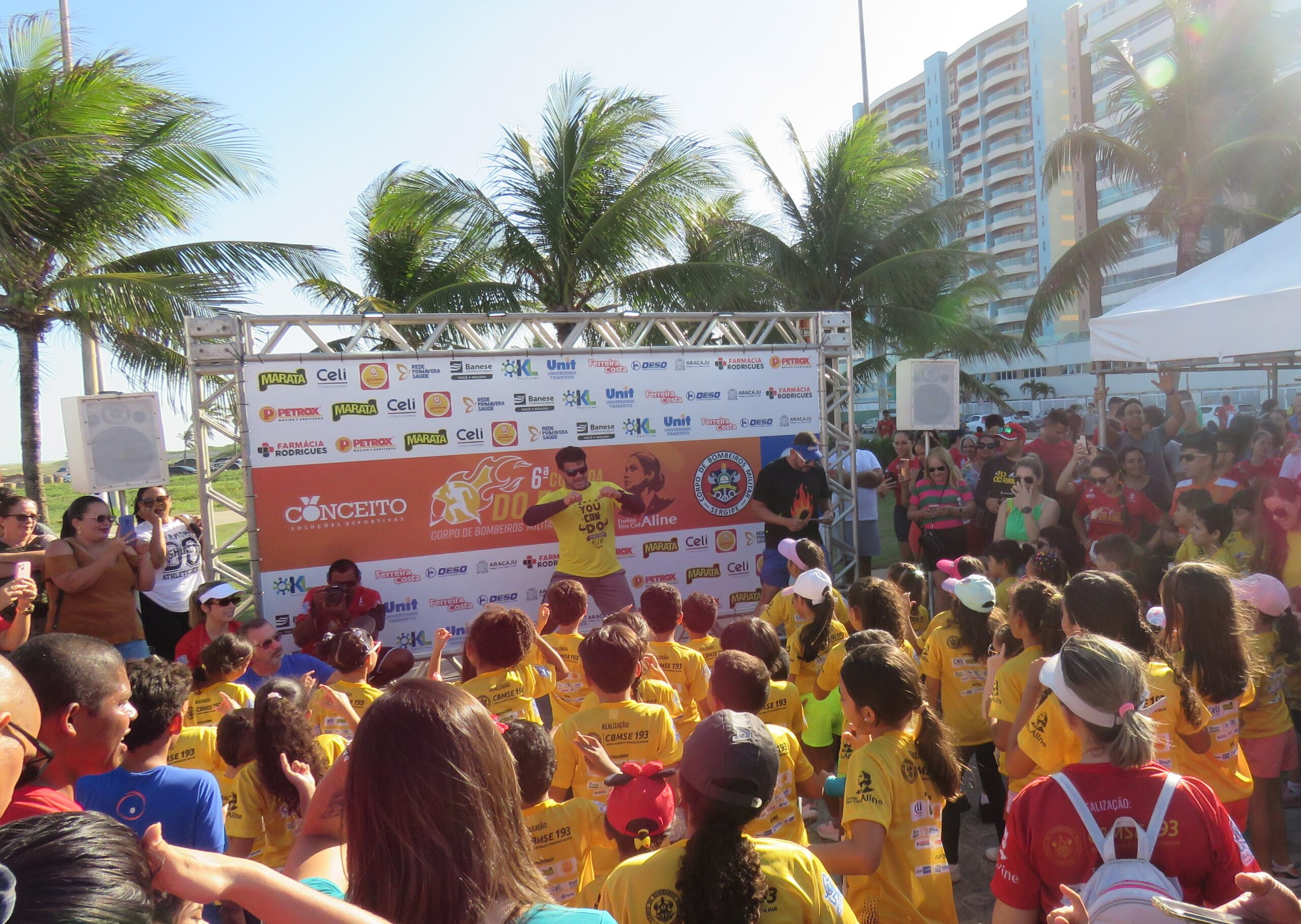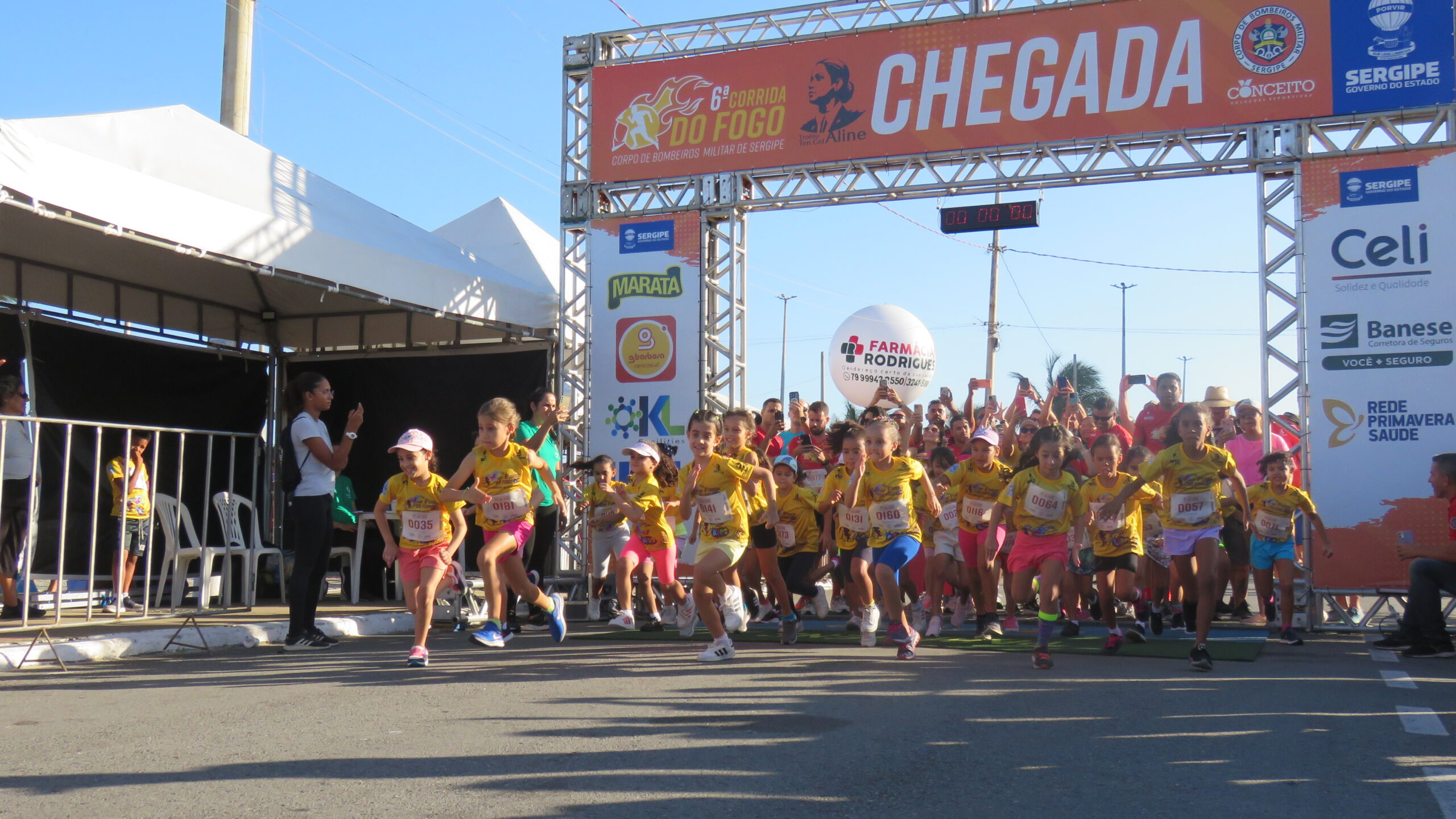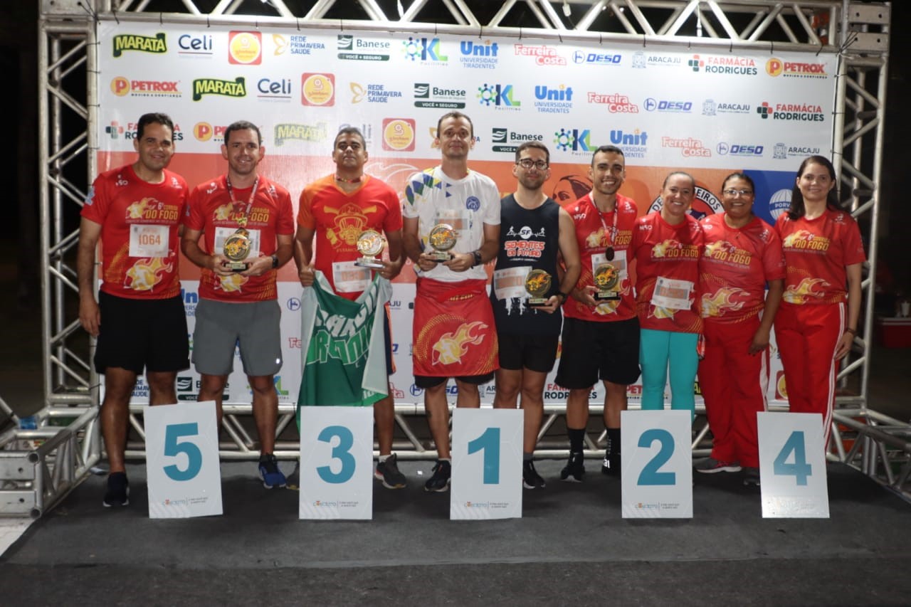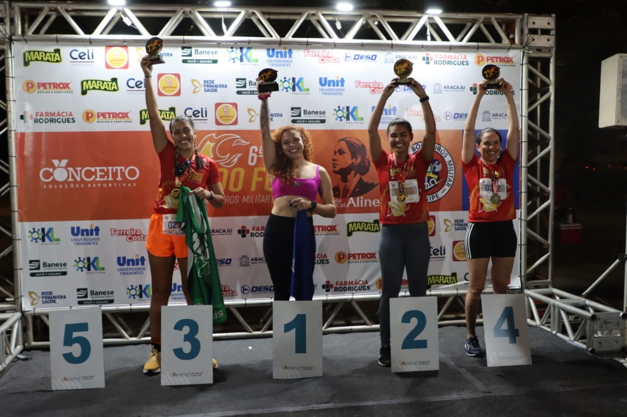 A 6a Corrida do Fogo do Corpo de Bombeiros Militar de Sergipe (CBMSE) reuniu mais de mil participantes na tarde deste sábado (30), na Orla da Atalaia, em Aracaju. O evento foi organizado pela Conceito Soluções Esportivas e faz parte das comemorações pelos 103 anos da corporação. Esse ano a competição homenageou a tenente-coronel Aline Oliveira, uma das idealizadoras da atividade, que faleceu vítima de câncer. Um desenho do rosto dela estampou camisas e medalhas, deixando essa edição da prova ainda mais especial para colegas de farda, familiares e amigos.