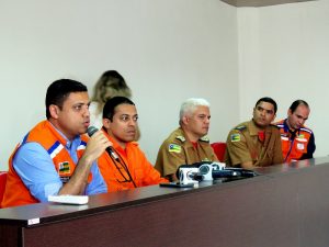 Foi realizada, na manhã desta segunda-feira (09), no quartel central do Corpo de Bombeiros Militar de Sergipe (CBMSE), em Aracaju/SE, uma coletiva de imprensa para esclarecer detalhes sobre o desabamento de um camarote na festa Odonto Fantasy, que ocorreu na madrugada de domingo (08), na Rodovia dos Náufragos, na capital sergipana. Além de bombeiros militares, participaram da entrevista coletiva representantes da Defesa Civil de Sergipe e de Aracaju.