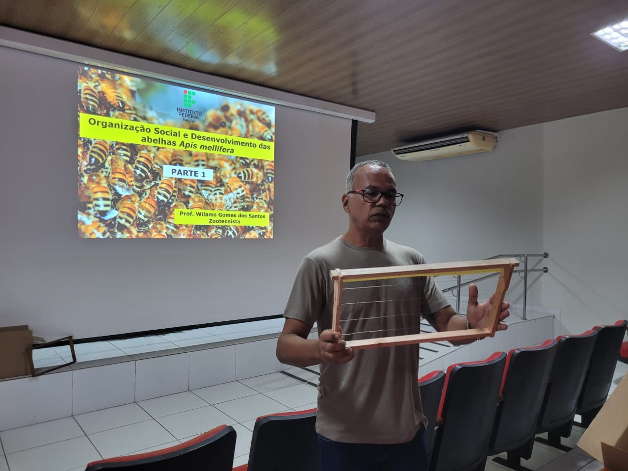 Foram abordados temas como “Biologia e o comportamento das abelhas africanizadas”, “Postura educativa e preventiva”, “Uso correto de Equipamentos de Proteção Individual (EPIs) específicos para manejo de abelhas”, “Emprego de métodos adequados de captura, remoção e transferência de colônias, priorizando o resgate e preservação das abelhas, em consonância com práticas de manejo sustentável e com a legislação ambiental vigente”, entre outros.