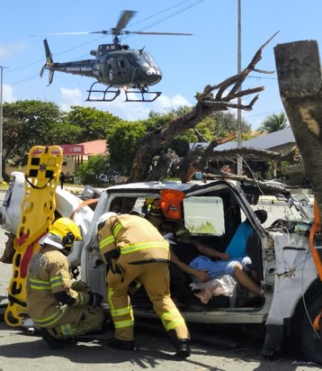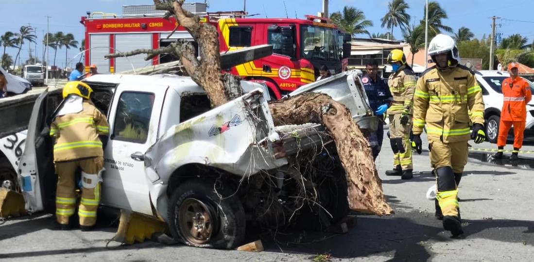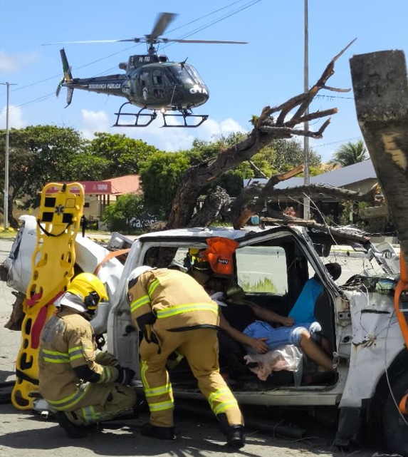 “A guarnição que atendeu a ocorrência foi do 2º Subgrupamento Bombeiro Militar. Isolamos a área e aguardamos a chegada da Energisa, que fez o corte de energia e retirada da fiação elétrica, dando acesso à área para que o bombeiro começasse a intervenção. Foi feita toda a operação, com isolamento e estabilização tanto do veículo quanto do poste e da árvore, para início da extração de porta. Ao chegarmos na cena, havia uma vítima deambulando, que tinha recebido uma pancada na cabeça quando a árvore caiu. Ela foi atendida pela equipe do Serviço de Atendimento Móvel de Urgência (Samu). Foram retiradas três vítimas do veículo. A primeira delas, em estado grave, foi removida ao hospital pelo Grupamento Tático Aéreo (GTA)”, explica.