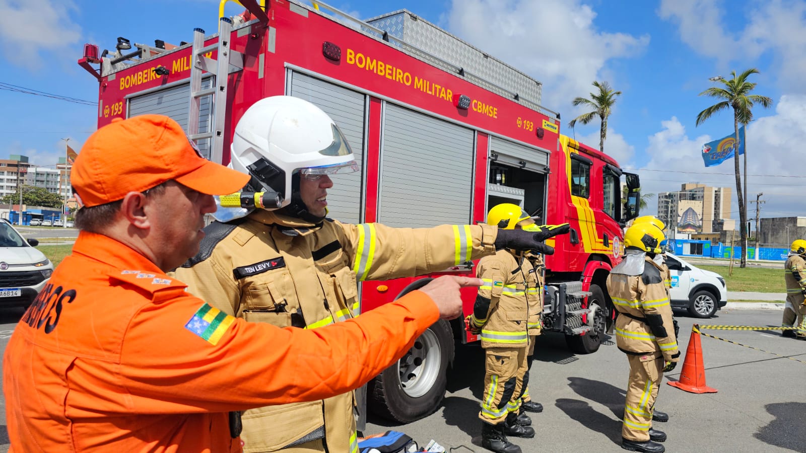 O Corpo de Bombeiros Militar de Sergipe (CBMSE) participou, na manhã desta quarta-feira (29), de um simulado de atendimento de ocorrência de acidente veicular envolvendo a queda de uma árvore sobre a rede elétrica. A ação aconteceu na Orla de Atalaia, em Aracaju/SE, com o objetivo de fortalecer a atuação integrada entre as instituições que atendem este tipo de emergência, dando uma resposta rápida e eficaz das equipes em situações reais.