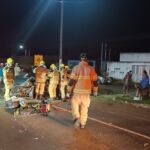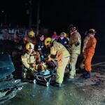 Bombeiros realizam resgate de vítima presa às ferragens em acidente envolvendo caminhão e carro de passeio na BR 101