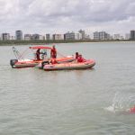 Bombeiros realizam travessia a nado entre as cidades de Aracaju e Barra dos Coqueiros