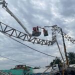 Equipes do Corpo de Bombeiros Militar de Sergipe (CBMSE) resgataram, no final da trade desta terça-feira (23), dois trabalhadores que ficaram pendurados na estrutura de uma quadra de esportes que desabou no município de Barra dos Coqueiros. Não houve registro de feridos