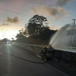 “O veículo estava com uma carga de 64.000 litros de etanol. A guarnição agiu rápido para impedir que o etanol entrasse em combustão, contendo as chamas que se concentraram na parte dos pneus. Posteriormente foi feito o processo de resfriamento da carga e do material queimado. Na ocorrência foram utilizados aproximadamente 10.000 litros de água e 100 litros de LGE (líquido gerador de espuma)”, afirmou o aspirante Yargo Olveira, que comandou o atendimento à ocorrência.
