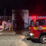 Corpo de Bombeiros combate incêndio em veículo dentro de oficina em Aracaju