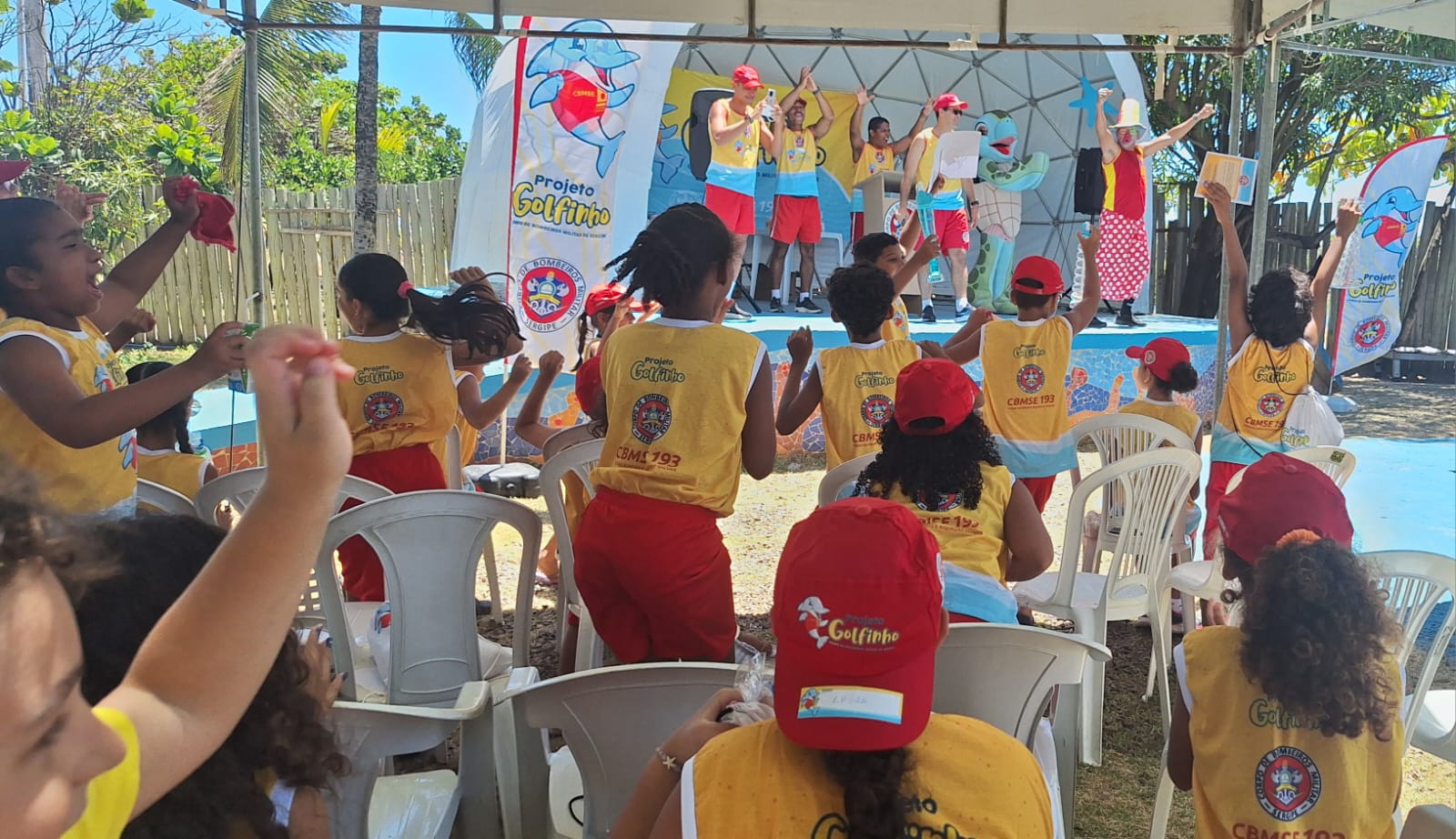 As atividades também contemplaram momentos de lazer, com distribuição das crianças em equipes carinhosamente chamadas de Tortuga, Boto e Baleia. Um dos pontos altos das brincadeiras era o concurso de dança da música do Projeto Golfinho.