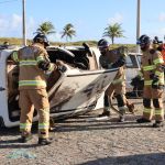 O Corpo de Bombeiros Militar do Estado de Sergipe (CBMSE) participou na tarde desta quarta-feira (27) de um simulado realizado pela Defesa Civil Estadual na praça de eventos da orla de Atalaia, em Aracaju. O simulado foi de um resgate de vítimas de acidente automobilístico com queda de poste de energia e envolveu diversos órgãos de resposta a desastres.
