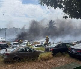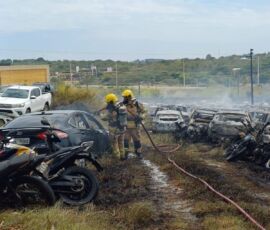 O incêndio aconteceu na manhã desta quinta-feira (1) e o local era utilizado para a guarda de veículos apreendidos em decorrência de crimes, que se encontram à disposição da Polícia Civil de Sergipe. “Foram encaminhadas ao local sete viaturas dos quartéis central e da orla da Atalaia, com 25 bombeiros empregados na ocorrência. Utilizamos no combate cerca de 85 mil litros de água, além de Líquido Gerador de Espuma. O incêndio evoluiu de forma muito rápida por conta da alta temperatura e dos ventos fortes. Não temos como precisar a quantidade de carros atingidos e não houve vítimas”, afirmou a tenente Joana Andrade.