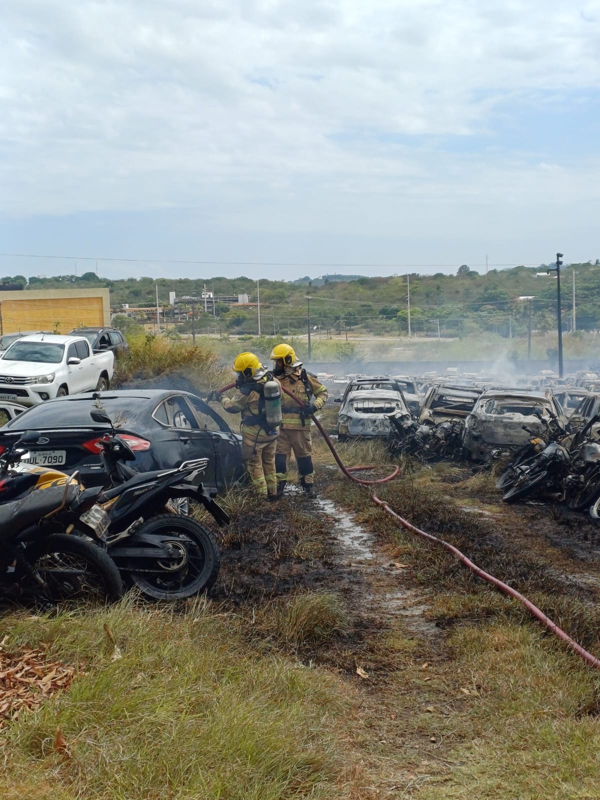 O incêndio aconteceu na manhã desta quinta-feira (1) e o local era utilizado para a guarda de veículos apreendidos em decorrência de crimes, que se encontram à disposição da Polícia Civil de Sergipe. “Foram encaminhadas ao local sete viaturas dos quartéis central e da orla da Atalaia, com 25 bombeiros empregados na ocorrência. Utilizamos no combate cerca de 85 mil litros de água, além de Líquido Gerador de Espuma. O incêndio evoluiu de forma muito rápida por conta da alta temperatura e dos ventos fortes. Não temos como precisar a quantidade de carros atingidos e não houve vítimas”, afirmou a tenente Joana Andrade.