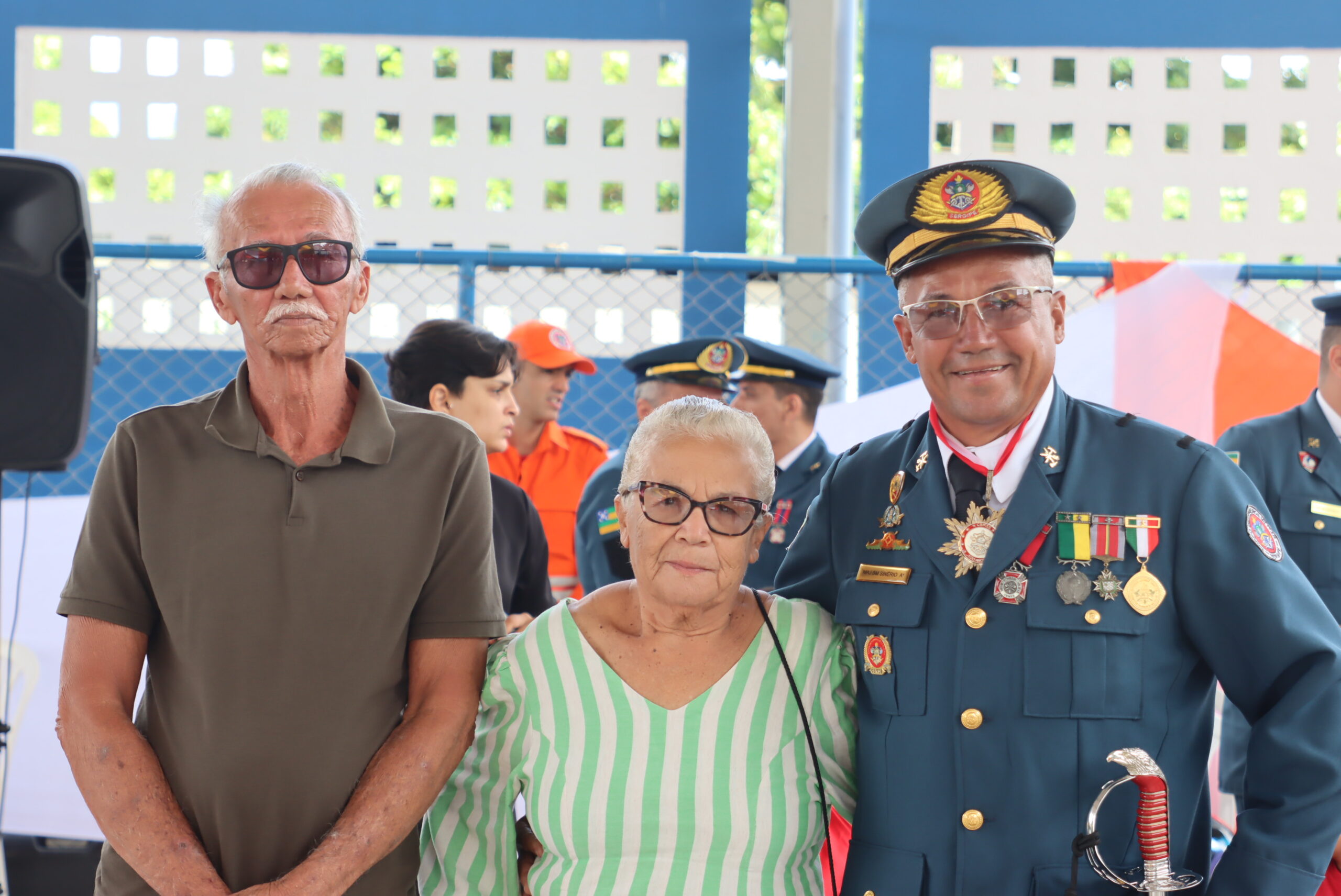 Já o major Sinério Santos teve um motivo a mais para comemorar a data, a presença do pai, bombeiro da reserva. “Quero agradecer a Deus, a cada pessoa que eu trabalhei, aos meus familiares e amigos. Especialmente quero agradecer ao meu pai que foi a minha inspiração. Trabalhei dez anos com ele como chefe da minha guarnição. Estar aqui com ele hoje é muito emocionante. Tenho muito orgulho de ser bombeiro”, contou.