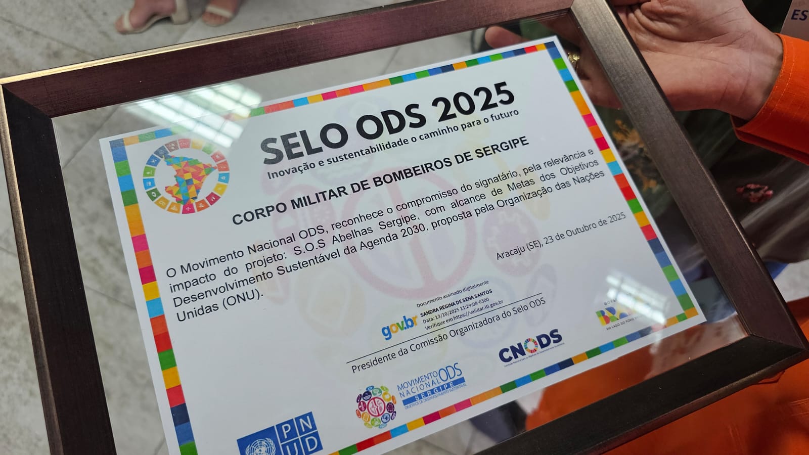 O Corpo de Bombeiros Militar de Sergipe (CBMSE) recebeu, nesta quinta-feira (23), no auditório do Tribunal de Justiça, em Aracaju/SE, o Selo Objetivos de Desenvolvimento Sustentável (ODS) Sergipe 2025, concedido a práticas que contribuem para a melhoria da qualidade de vida das pessoas, das cidades e do meio ambiente. O objetivo da iniciativa é promover e fomentar práticas que contribuem para a implementação da agenda 2030, um plano de ação global estabelecido pelos Estados-membros da Organização das Nações Unidas (ONU).