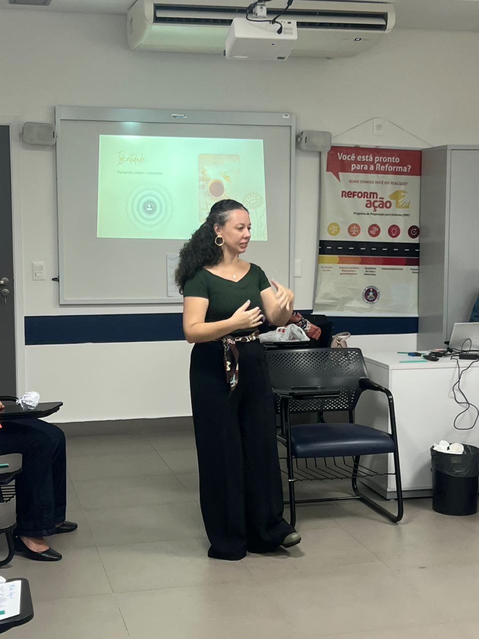 A psicóloga Rafaela Santos foi a responsável pela palestra com o tema “Autoconhecimento: identidade e valores pessoais”. O projeto conta com 22 inscritos e os encontros são quinzenais, abordando diversos temas como organização financeira, novos projetos, entre outros.